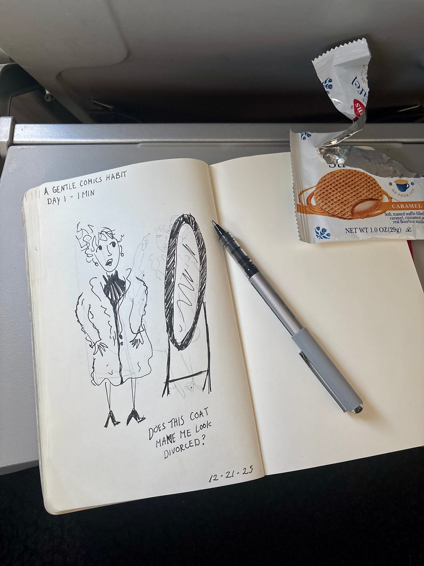 The airport is my favorite place to write. Especially around the holidays. I like looking for other people’s version of excitement and dread for visiting loved ones. I saw mom and her college age daughter unpack stacks of Tupperware to munch on at the gate. A dad just letting his kid tire herself out running up and down a ramp with a hello kitty carry on. And a dog stop and squat to do her business right at the boarding line.