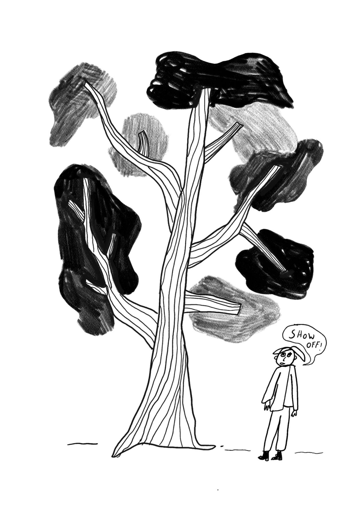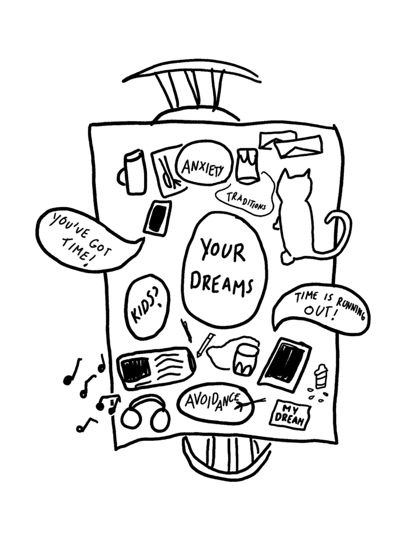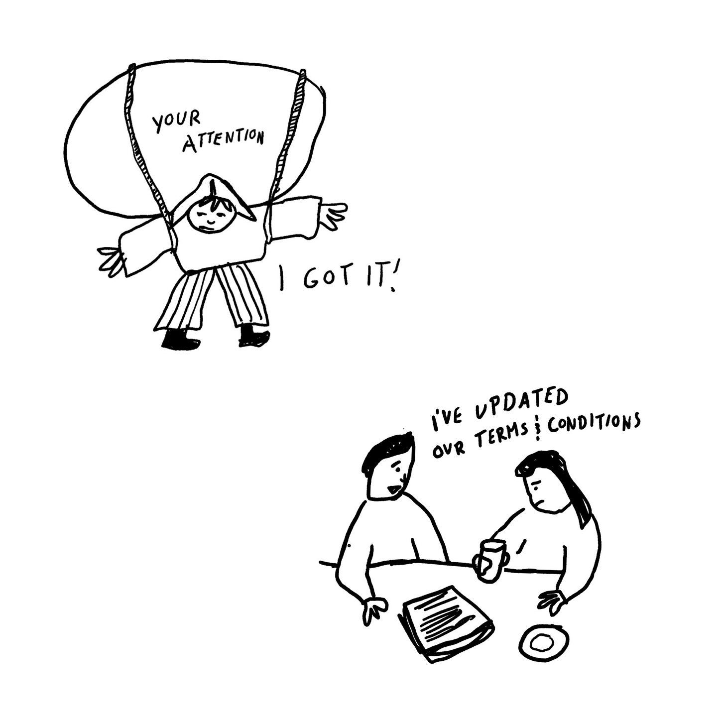I made a collection of cartoons about “bad habits” called “Here I Go Again” to table with. I wanted to make drawings about my personal patterns (aka flaws) that the algorithm knows I have. I feed it this info I know. I need to train it to feed me cat videos again. Every day someone on Instagram is telling me to fix something about myself— my attachment style, my money habits, my diet, my shampoo, my breathing— it’s more passive aggressive than my older sister after our agree-to-disagree-”conversations.”